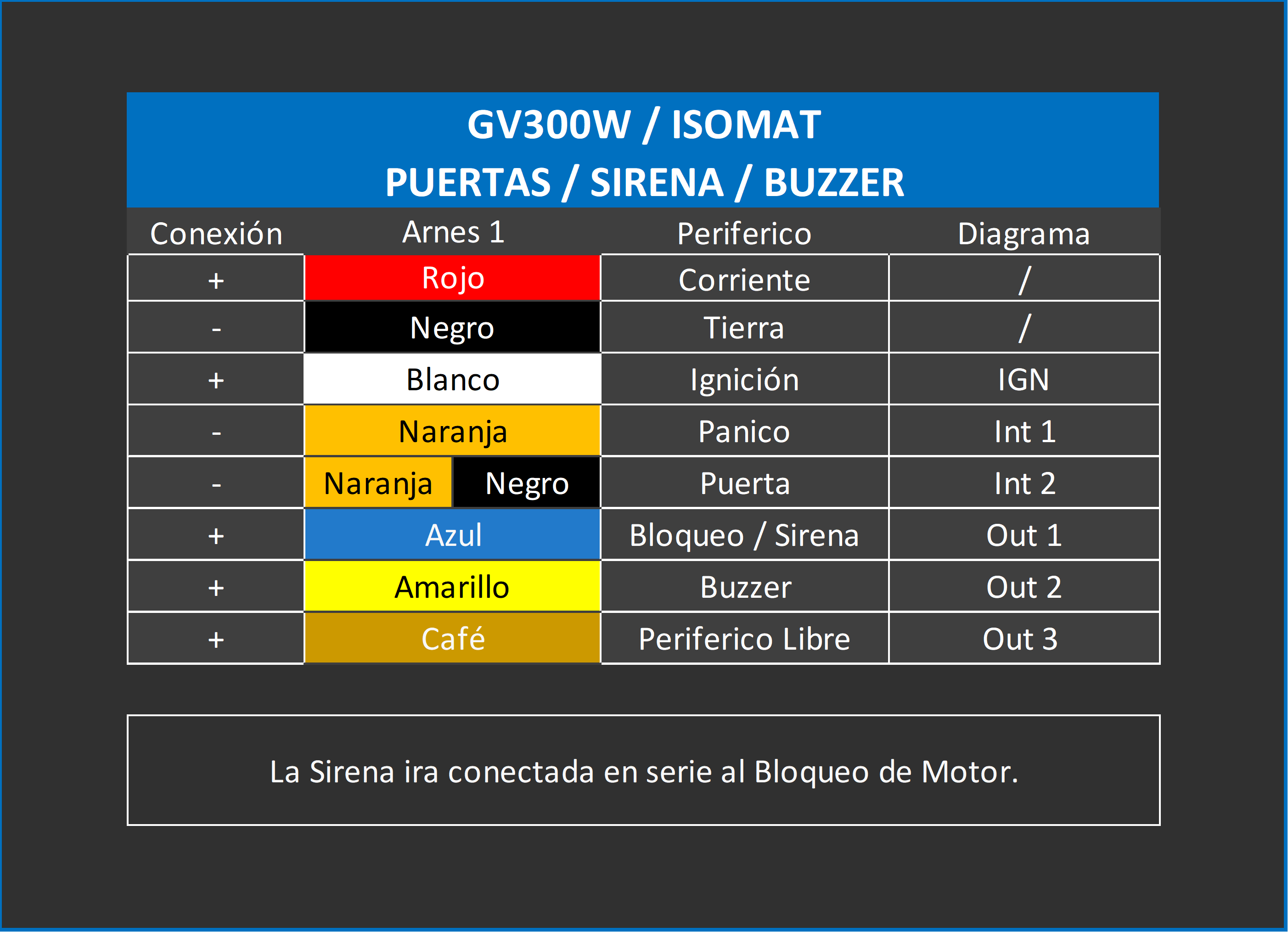 GV300WActivar Entradas y Salidas. AT+GTOUT=gv300w,0,,,0,0,0,0,0,0,7,,0,0,,0,0,FFFF$ AT+GTDIS=gv300w,0,1,,0,1,1,1,1,2,1,1,1,3,1,,0,,,,,FFFF$