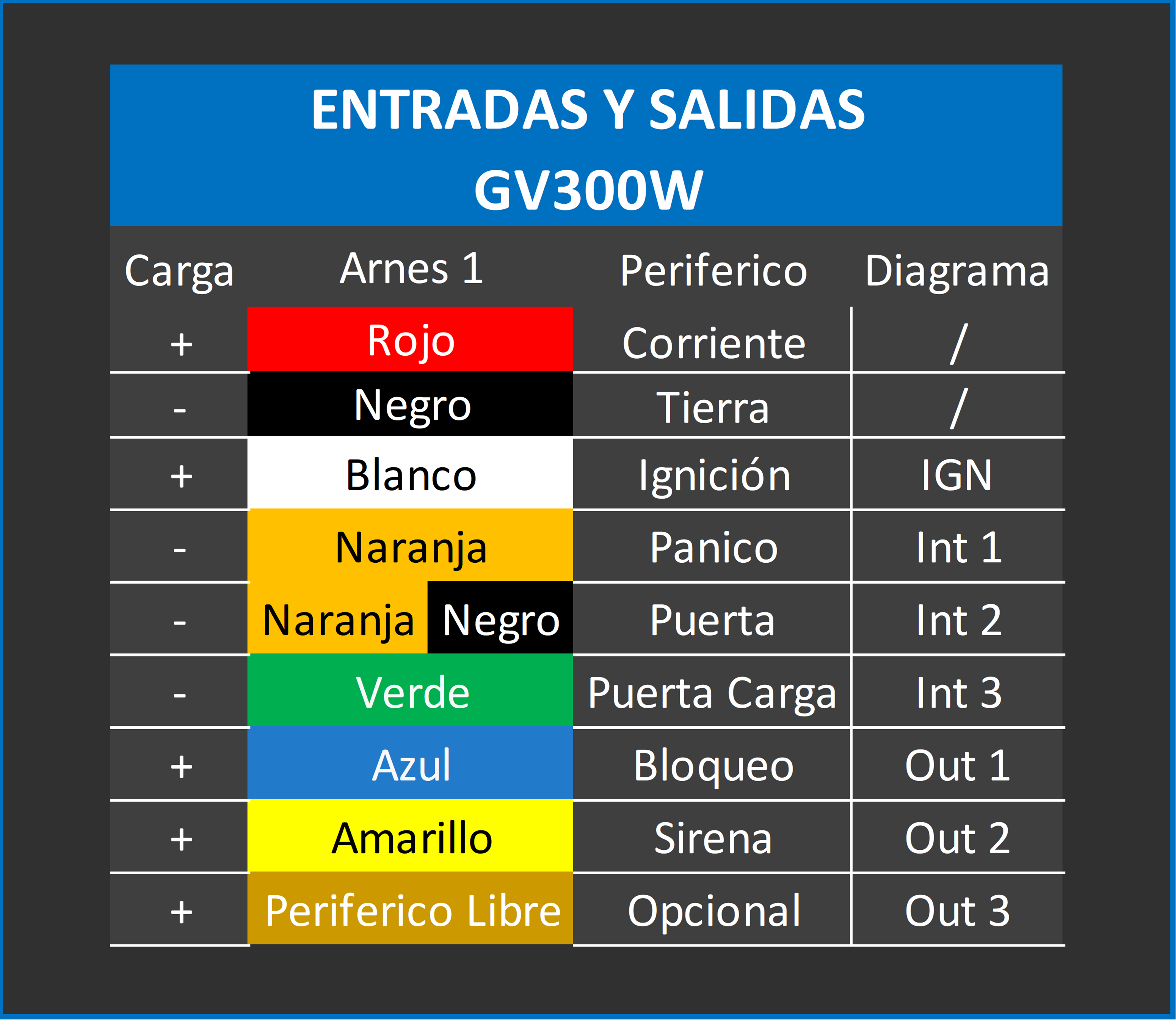 GV300WActivar Entradas y Salidas. AT+GTOUT=gv300w,0,,,0,0,0,0,0,0,7,,0,0,,0,0,FFFF$ AT+GTDIS=gv300w,0,1,,0,1,1,1,1,2,1,1,1,3,1,,0,,,,,FFFF$